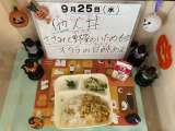 今日の献立は、他人丼、ささみと野菜のいためもの、オクラの甘酢あえです。
