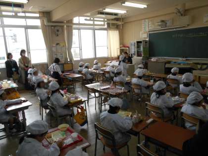 4月26日(金)今年度初めての学習参観でした。1年は給食参観で、配膳や食べている様子を参観しました。