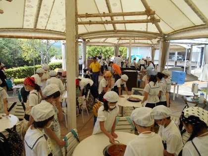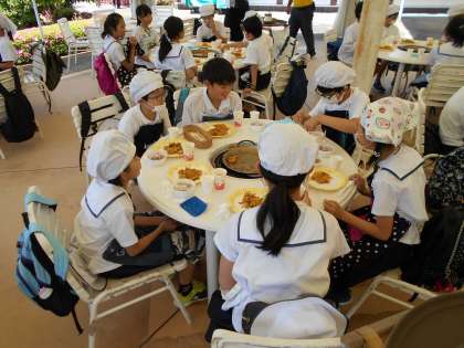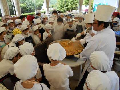 5月30日(木),31日(金)の2日間、6年生は修学旅行に行きました。1日目はパルケエスパーニャに行きました。班で協力してパエリヤを作りました。