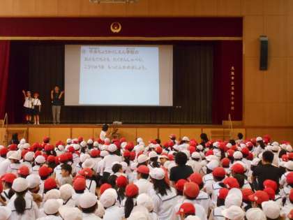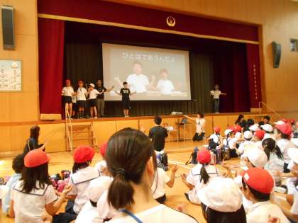 6月14日(金)子どもたちが楽しみにしていた玉っ子まつりでした。「みんなと仲を深め 協力し 笑顔あふれる おまつりにしよう」のめあて通り、全校で楽しく盛り上がりました。また、大阪府立中央聴覚支援学校のみなさんを招待して、いっしょに楽しみながら交流を深めることができました。