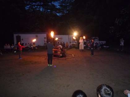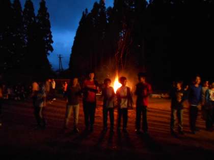 1日目の夜は、キャンプファイヤーでした。スタンツやゲームで盛り上がりました。
