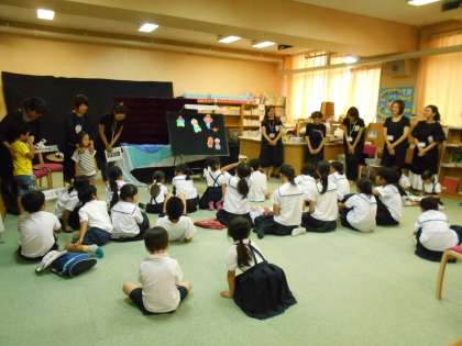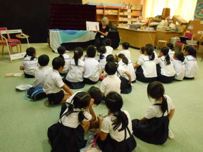 7月26日(金)図書館開放で「絵本の会」の方々に読み聞かせをしていただきました。10時10分〜、11時10分〜の2回、読み聞かせや、体を動かす場面があり、子どもたちはとても楽しんでいました。