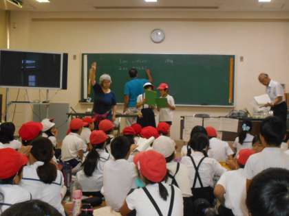 その後、多目的室に集まって、班ごとに発見した植物・生き物を発表しました。