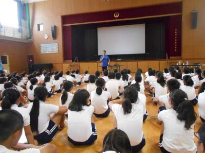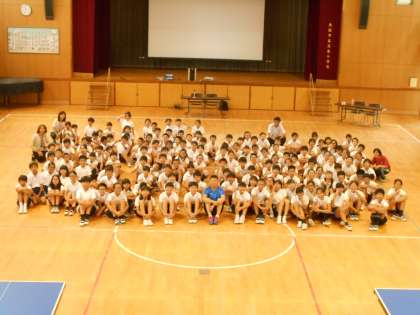 10月2日(水)5・6年生を対象に、トップアスリートによる「夢授業」が行われました。アテネオリンピック卓球日本代表の 新井 周 選手が来てくださいました。オリンピックの映像を見せていただき、日本に留学し苦労が多くあったが、のり越えてこられたお話を聞かせていただきました。その後、実際に新井選手と卓球を楽しみました。
