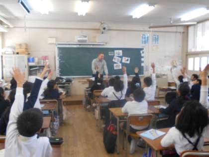 1月9日(木)4年の外国語活動の授業にネイティブの講師を招いて英語の学習をしました。
