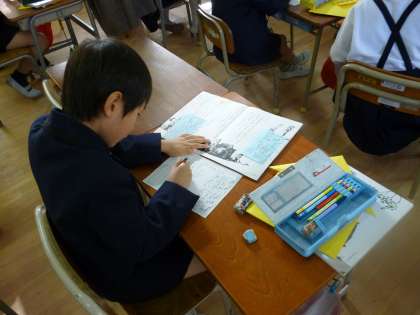 11月27日(木)中央区国語部の研究授業が1年1組で行われました。中央区の各小学校の国語主任が授業を参観し、放課後の研究討議では講師の方から新しい国語の授業の方向性について指導いただきました。