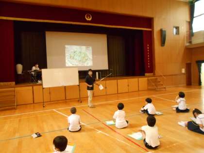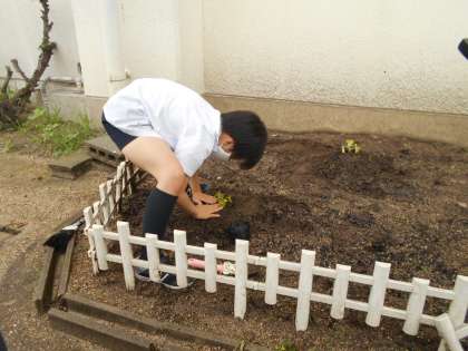 7月13日(月)玉造稲荷神社の鈴木さんにゲストティーチャーとして来ていただき、玉造黒門越瓜の学習をしました。玉造の歴史、黒門越瓜の育て方や食べ方などを教えていただいた後、苗を学習園に植え替えました。
