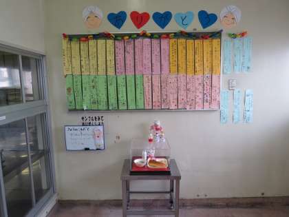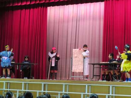 本校では、給食週間を平成26年度は2月16日(月)〜2月20日(金)としました。最終日の20日、講堂で給食集会を行い給食調理員さんに日頃の感謝を伝えるとともに、給食委員会による食物アレルギーについての劇を行いました。また、子どもたちが「給食」を題とした俳句や短歌をつくり、その中で各クラスから選ばれた作品が給食室の児童溜りに掲示されています。