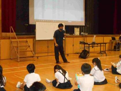 4年生が、玉造稲荷神社の方から「玉造黒門越瓜」についての話を伺いました。玉造地域に大阪城の黒門があり、この付近で栽培されていたことからこの名が付いたそうです。4年生は興味津々でメモをとっています。