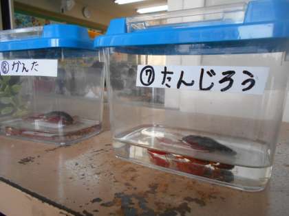 2年生の教室に、ザリガニがやってきました。2年生はそれぞれに名前を付け、大切に世話をしています。中に、「卵を抱いているザリガニがいる」と教えてくれました。たくさんの赤ちゃんザリガニが生まれるのが楽しみですね。