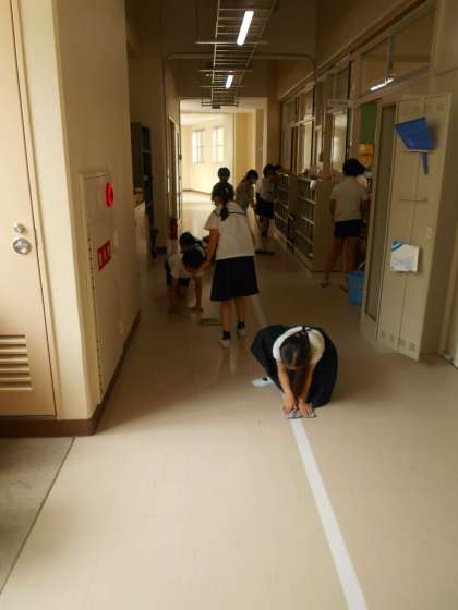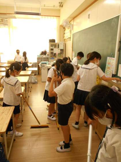 教室でも、廊下でも、手洗い場でも、みんな一生懸命掃除をしています。