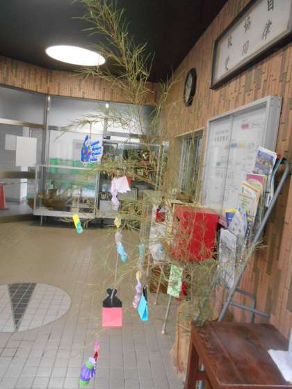あいにく雨の七夕となりましたが、七夕飾りや願い事があちらこちらに飾られています。