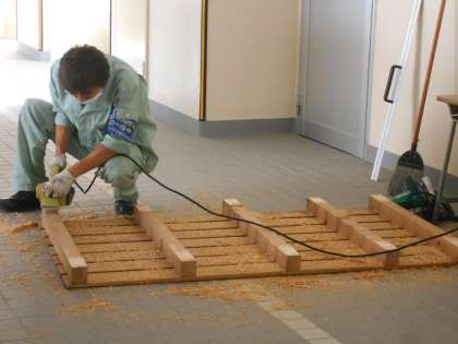 管理作業員さんが、校内から不要になった木製のすのこを集め、長さや高さを調整してリメイクしています。