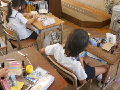 2年生は生活科で、ヨットカーづくりに取り組んでいます。
