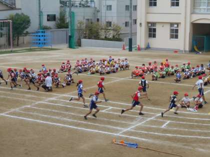5,6年生のリレーは、バトンパスがスムーズになり、コースの位置取りも上手になってきました。