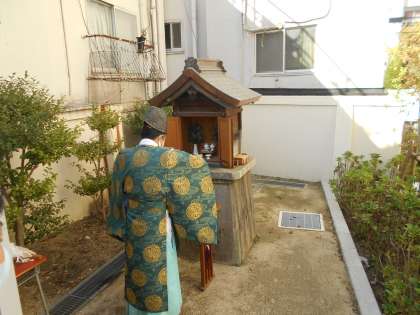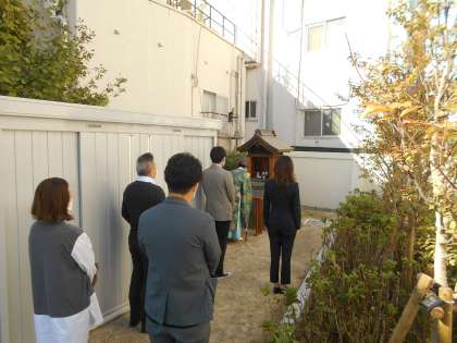 玉造小学校の敷地は、もともと玉造神社から譲り受けたものです。そのため、学校の一角にお社があり、毎年、玉造神社の神主様にご来校いただき、PTAの役員、人権啓発委員と学校管理職とで、子どもたちの安全と健康を祈願しています。今年は、新校舎のお祓いもしていただきました。大切な子どもたちが元気に安全に過ごせますように…。