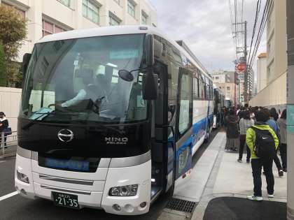 6年修学旅行。出発式を終えバスに乗り込み出発です!