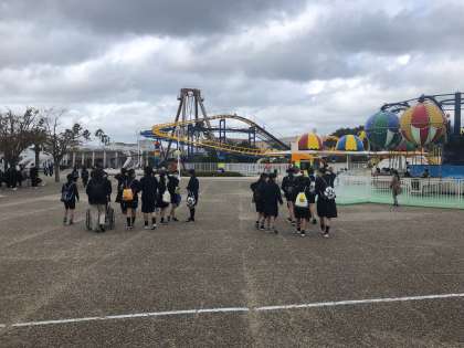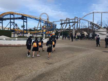 風がかなり強いですが、班ごとにアトラクションを楽しんでいます。