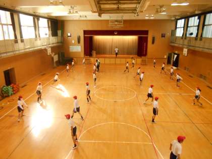 今日は6年生が講堂で、瞬発力等を高める運動や頭を使って動く活動を行いました。
