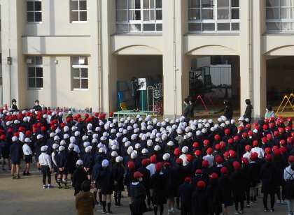 児童朝会で、身の回りに、いじめ、悪口、無視、SNSでの誹謗中傷など、誰かが心を傷つけられ辛い思いをするような問題がないか、考えました。辛い思いをしている人があれば、「大丈夫?」「なにかあった?」など、一言声をかけ、みんなが安心して過ごせる明るい学校にしましょう。