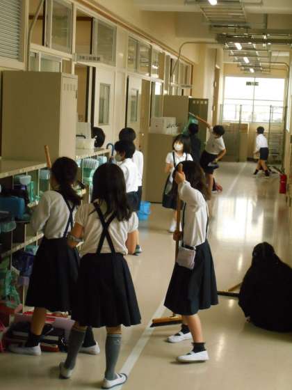 毎月30日は、玉造小学校の「ごみゼロの日」です。今月は、30日が休日なので、今日に繰り上げて行いました。環境委員会の児童が、「自慢できるぐらいきれいな玉造小学校にしましょう」と放送で呼びかけると、どの掃除場所でも、いつもよりもさらに念入りに掃除に励む子どもの姿が見られました。