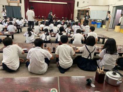 ネイチャービンゴを終えて、いよいよ、林間学習最後の食事です。五目ごはんを、味わっていただきます。