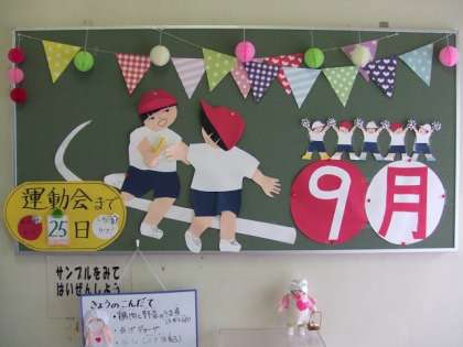 9月27日の運動会に向けて、9月の掲示は「運動会へのカウントダウン」です。