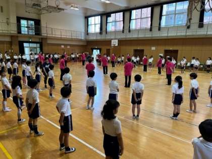 玉造女性会の皆様にソーラン節と河内音頭を教えていただきました。始めは上手く踊れませんでしたが、優しく丁寧にご指導いただいたので楽しく活動することができました。