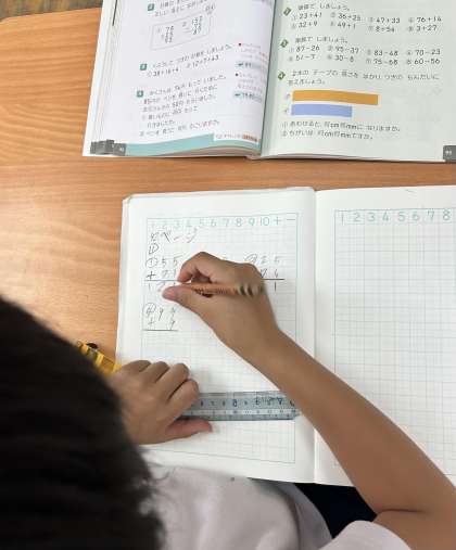 くり上がりとくり下がりに気を付けながら、練習しています。