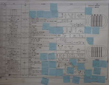 運動会に向けて、5年生はソーラン節、6年生は組体操の成功を誓って教室前の廊下に貼り出してある構成表に一人一人が改善点を付箋に書いて貼り、限られた時間の中の意見交流を行いました。