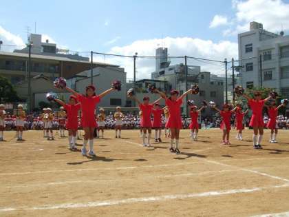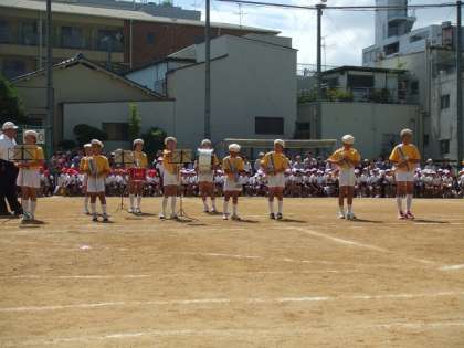 運動会午前の部の最後に、玉造校下子ども会トランペット鼓笛隊によるアトラクションがありました。