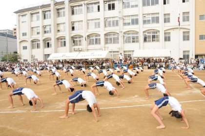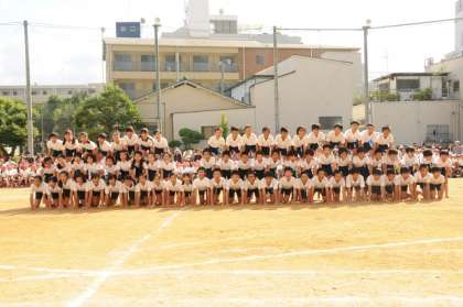 6年団体演技 組体操「軌跡 〜未来に向かって〜」です。