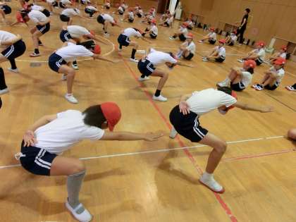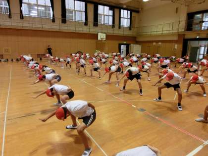 体育授業参観の団体演技の練習がスタートしました。5年生は、「南中ソーラン」に取り組みます。力強い演舞を見ていただけるよう、地道な練習を重ねていきたいと思います。