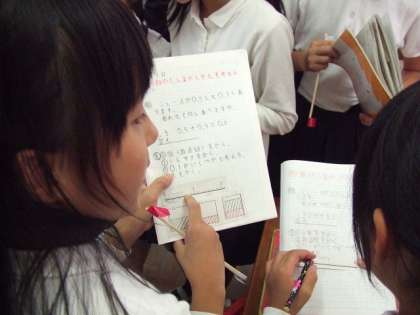 授業では、「学び合い」の時間を設けて、友だちと考えを意見交換しました。