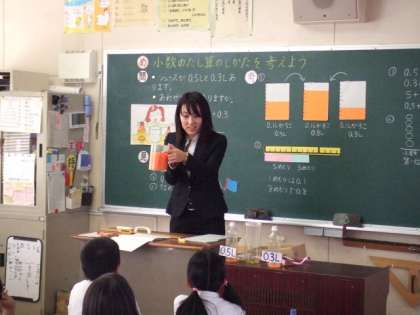 10月9日(金)の5時間目に、3年3組で「小数のたし算のしかたを考えよう」の授業研究会を行いました。