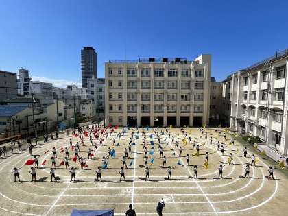 6年生は、最高学年らしく、音までそろったフラッグで150%の絆でした!
