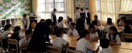 他学年の子どもたちと楽しく話しながら、答えを考えました。