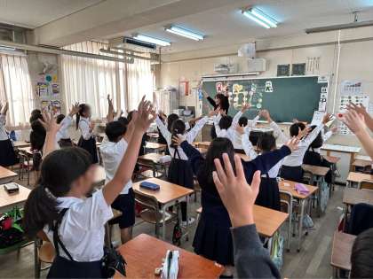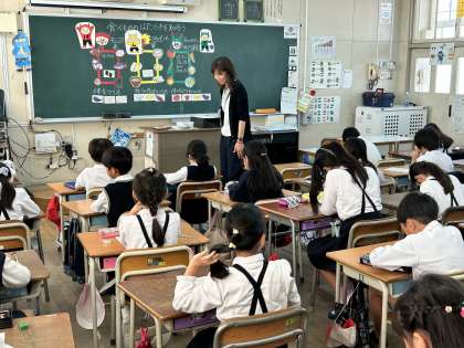 栄養指導を行いました。食べ物や食材を、赤(体をつくる)黄(熱や力のもとになる)緑(体の調子を整える)の仲間に分け、食べ物の働きを知ることができました。