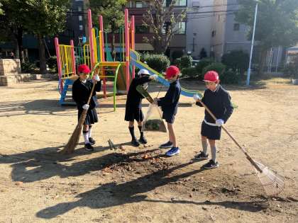14日(火)の2時間目に、ふれあい清掃がありました。4年1組は越中公園、4年2組は寺山公園、4年3組は森之宮公園を掃除しました。みんなで協力して地域の公園をきれいにすることができました。参加してくださった公園愛護会や保護者の方々、ありがとうございました。