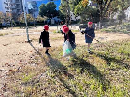 11/14(火)の2時間目、地域の方と保護者の方と一緒に、玉造公園と城南公園の清掃をしました。