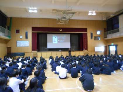 外部から講師を招き、インターネット、スマホ、ゲームの正しい使い方について教えていただきました。ネット上での行いと法律の関係や、加害者にも被害者にもならないための注意点など大切な内容が盛りだくさんでした。