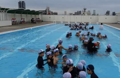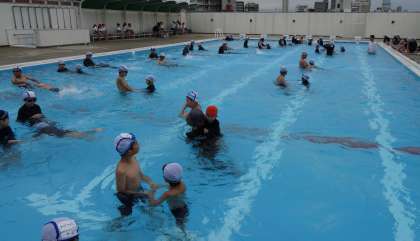 6月24日(月)と26日(水)の2日間に分けて1年生との交流プールを行いました。