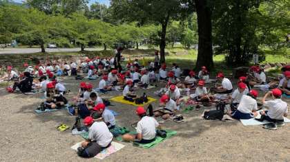 ?ひきつづき河原で昼食です。活動班ごとに集まり、お弁当をいただきました。