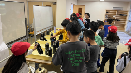 今日一日の活動の確認をし、体操をして体を動かしました。水筒にお茶を入れてもらう準備もしました。