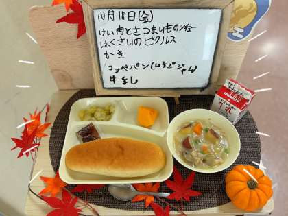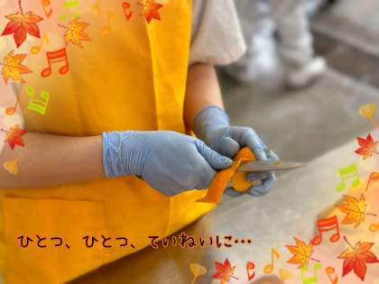 柿は給食室でひとつひとつ丁寧に皮むいていきます🎵