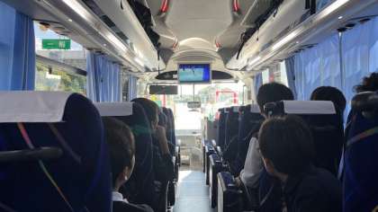 ?バス車内では、係のレクレーションで盛り上がったり、ビデオを観たり、とても楽しく過ごしています。