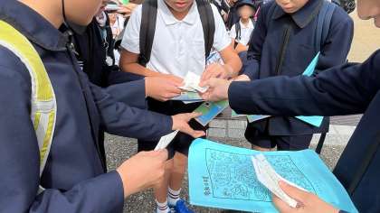 ?ここからは活動班ごとで、園内を楽しみます。案内マップと昼食のクーポンを手にしたあとは、班ごとにそれぞれ園内に散らばって行きました。