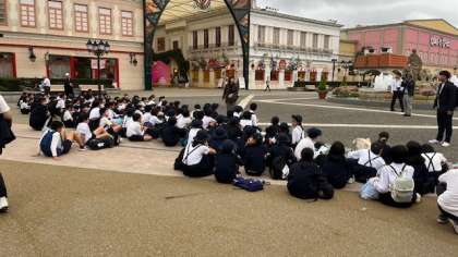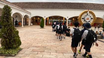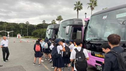 スペイン村の集合時刻となりました。小雨は短時間で降り止み、屋外での活動も無事に終えることができました。これからバスで宿舎へ移動です。
