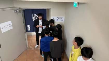 学級ごとに入浴します。お風呂でゆっくりくつろいで、今日一日の疲れをしっかり取ってください。