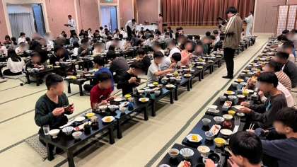 ?大広間で朝食をとりました。ご飯を食べて、からだも目覚めてきたようで、次第にいつもの元気な声が聞こえるようになってきました。